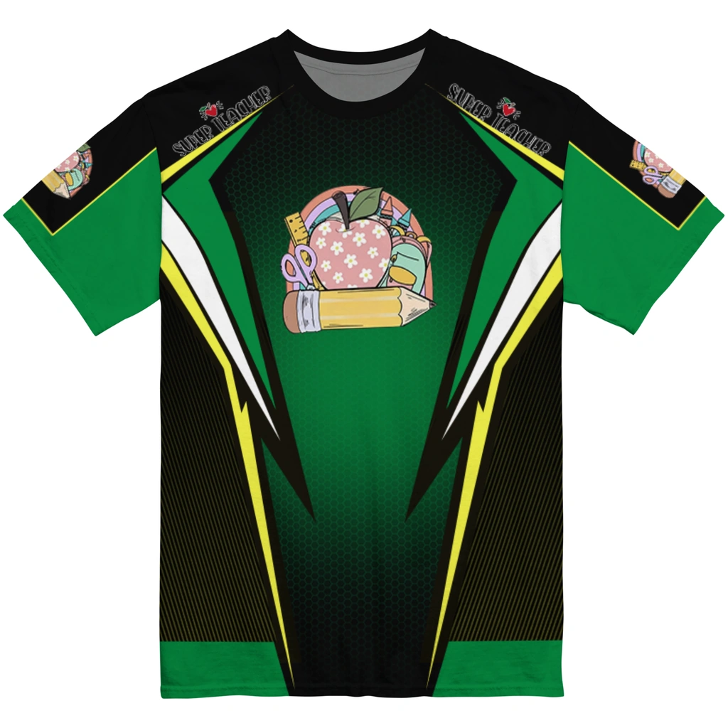Back To School 3D Tshirt – Custom Bold Symmetry Motif Green Black
