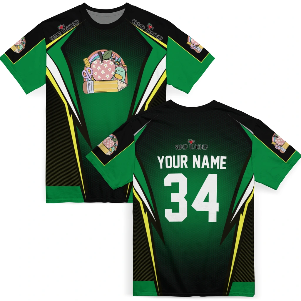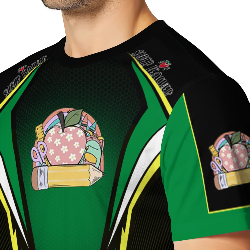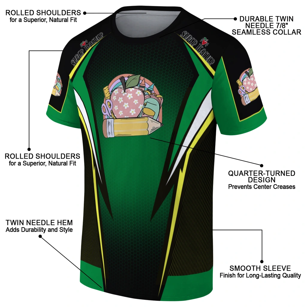 Back To School 3D Tshirt – Custom Bold Symmetry Motif Green Black – Product Overview