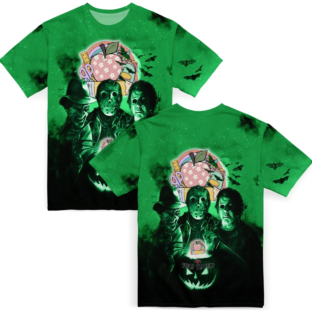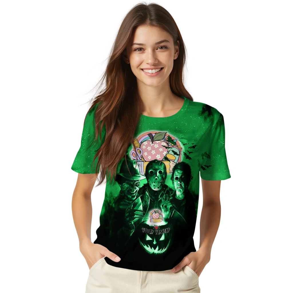 Back To School 3D Tshirt – Horror Icons Green Black – Product Overview