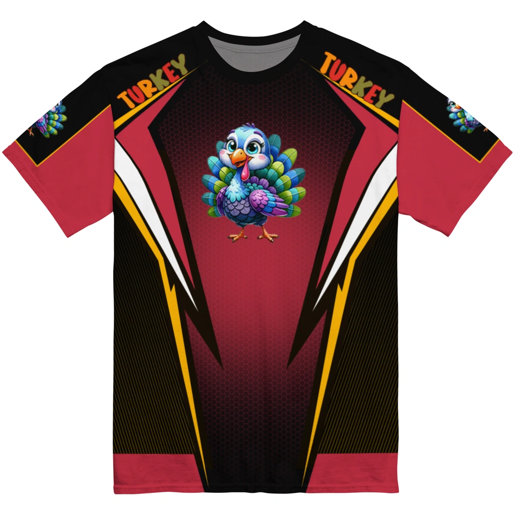 Cute Turkey 3D Tshirt – Custom Bold Symmetry Motif Red Black