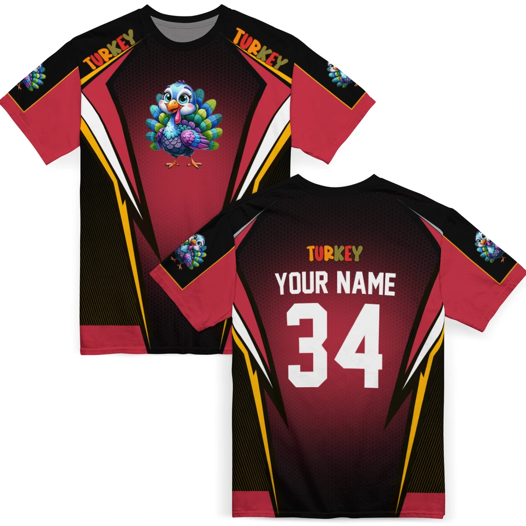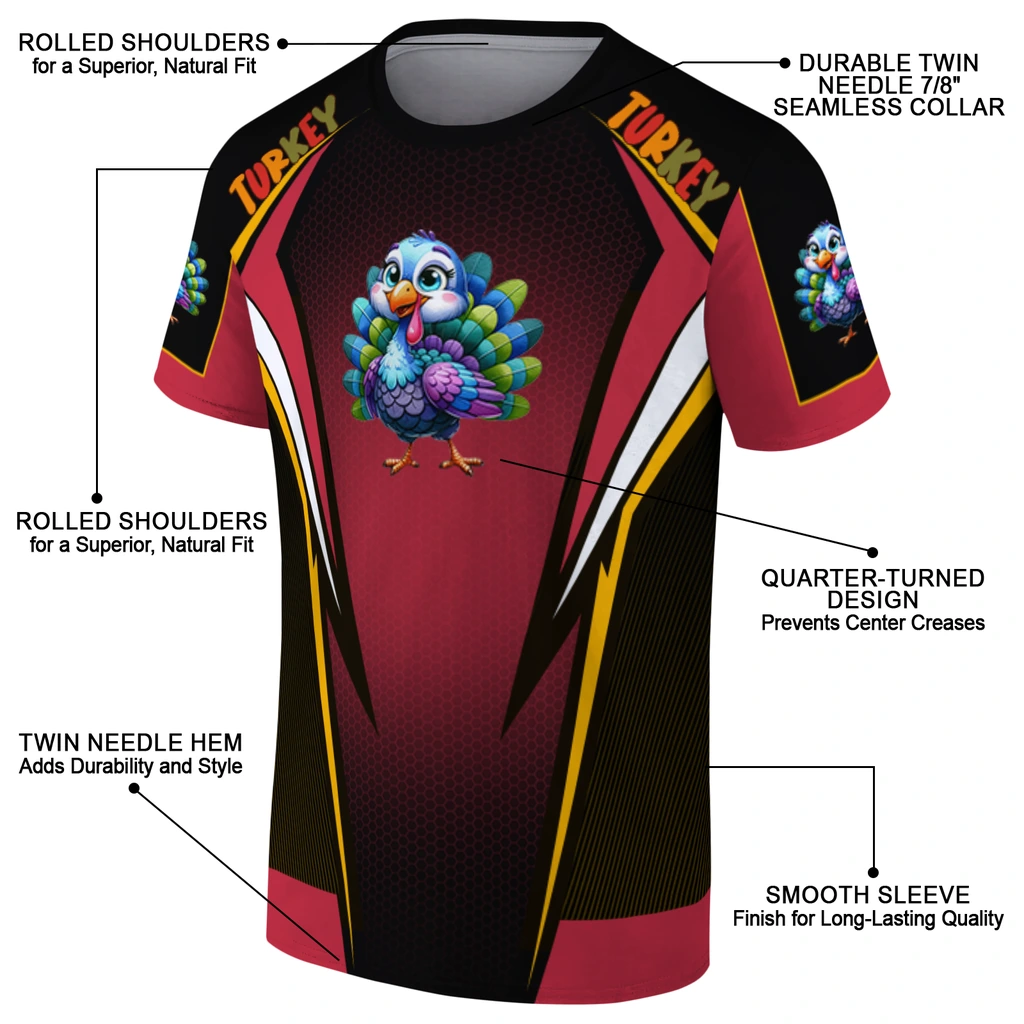 Cute Turkey 3D Tshirt – Custom Bold Symmetry Motif Red Black – Product Overview