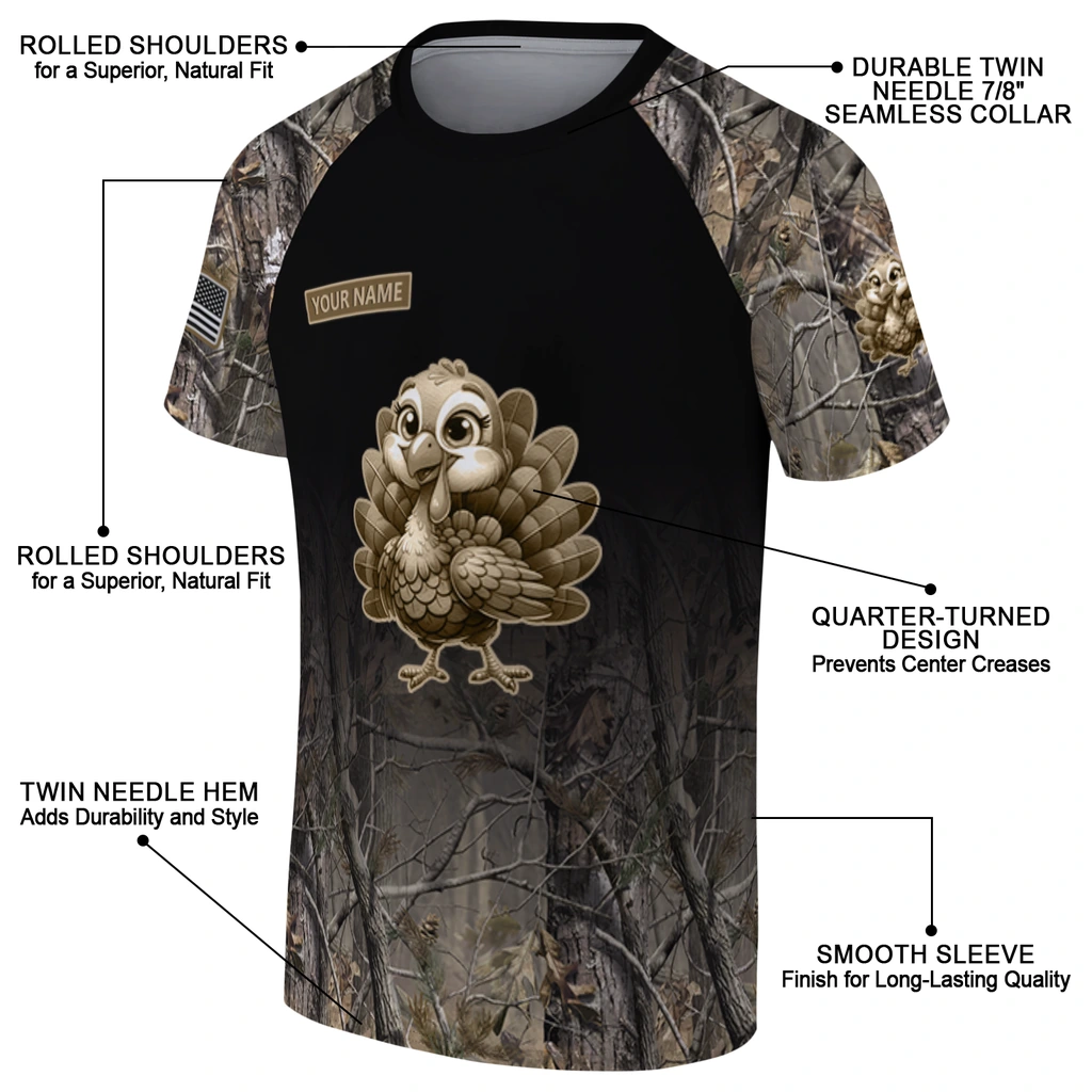 Cute Turkey 3D Tshirt – Custom Tree Branches Design Black – Product Overview
