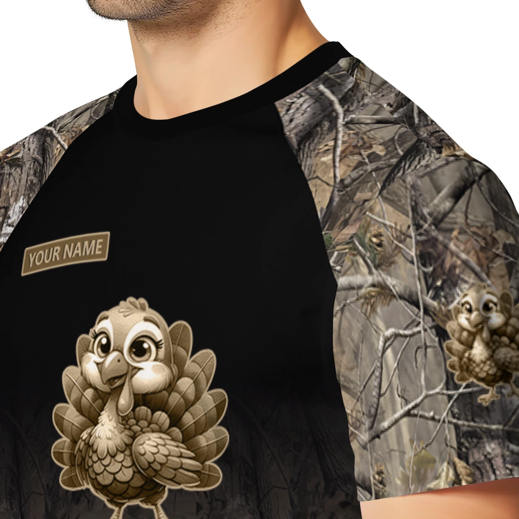 cute turkey 3d tshirt custom tree branches design black best selling.webp