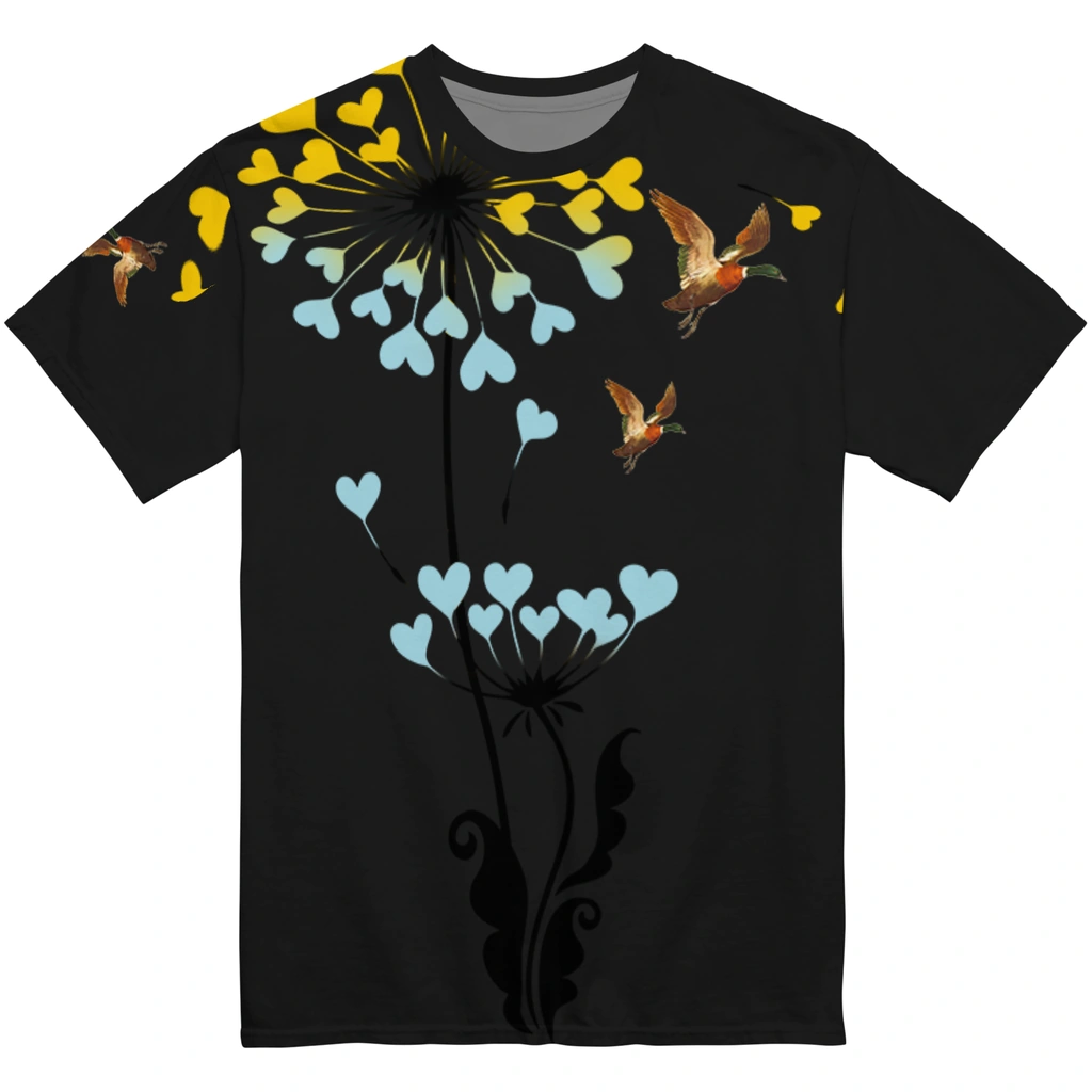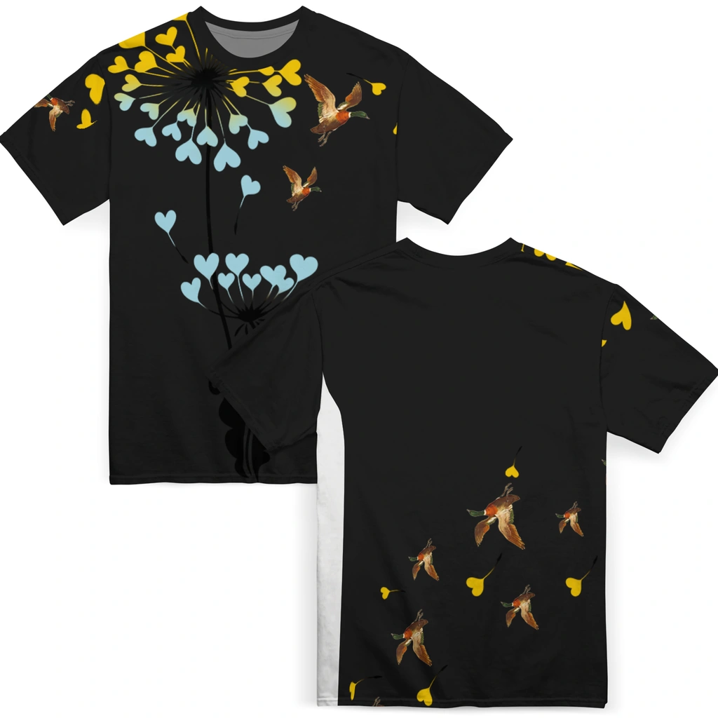 Duck Mallard Bird Flight Tshirt – Heart Dandelion – Product Overview