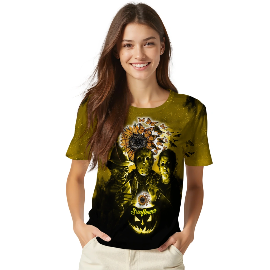 Sunflower Logo 3D Tshirt – Horror Icons Yellow Black