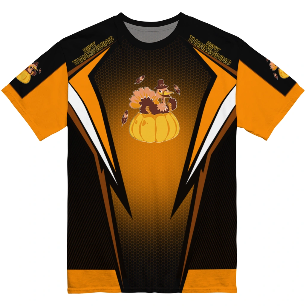 Thanksgiving Turkey 3D Tshirt – Customized Bold Symmetry Motif Yellow Black – Product Overview