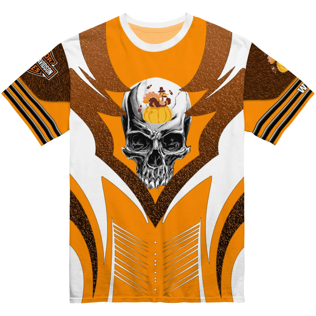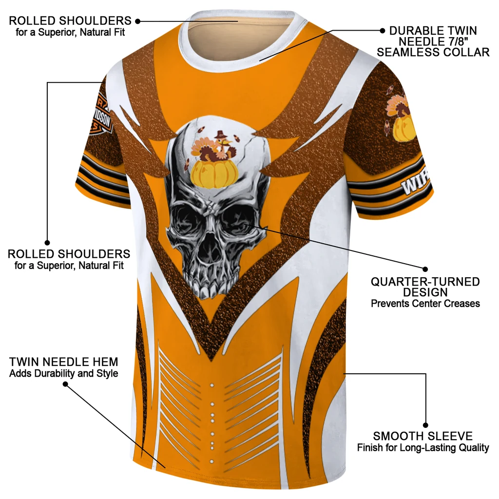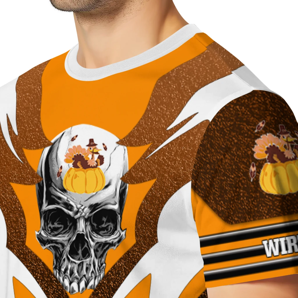 Thanksgiving Turkey 3D Tshirt – Customized Skull Emblem Yellow White – Product Overview