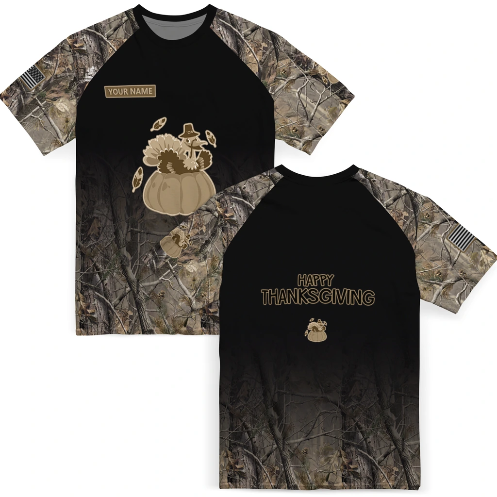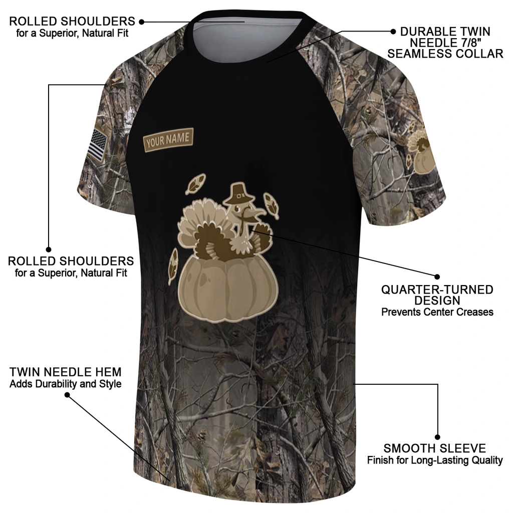 Thanksgiving Turkey 3D Tshirt – Customized Tree Branches Design Black – Product Overview