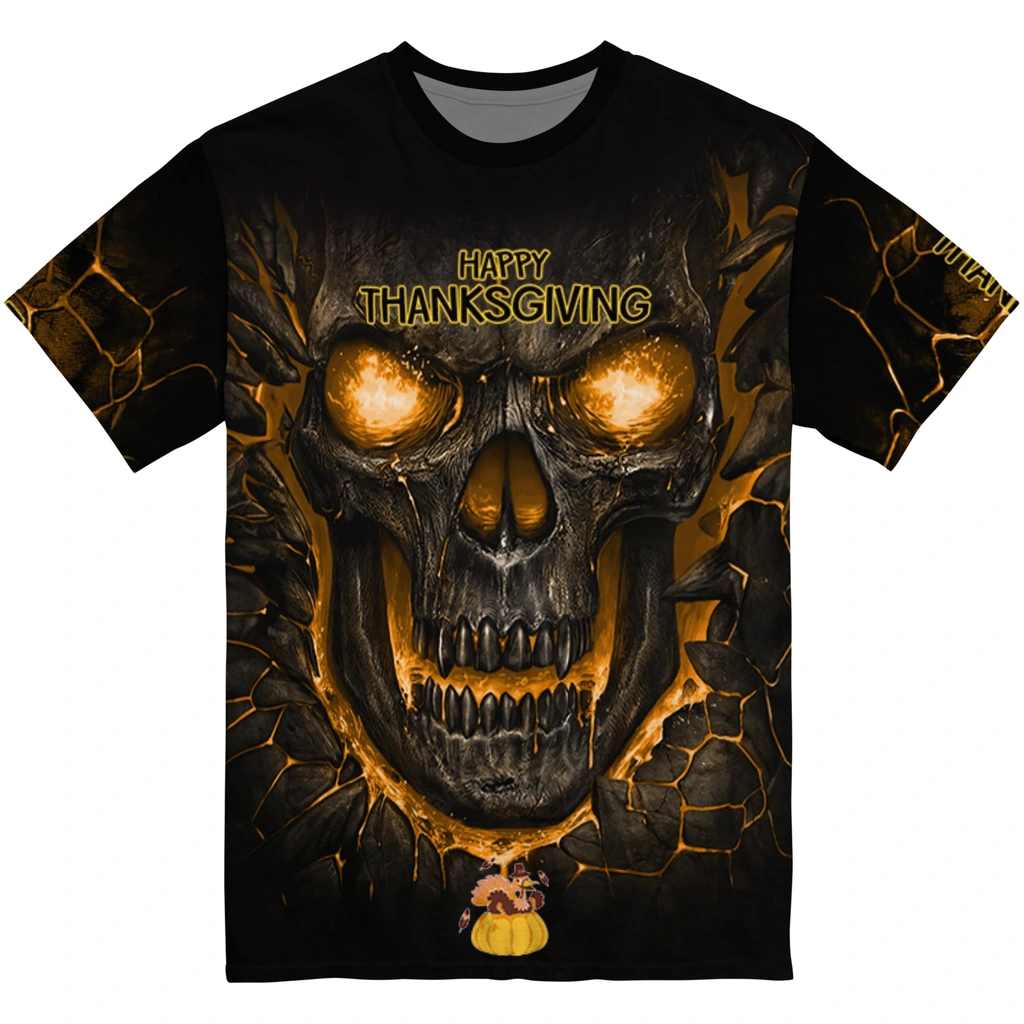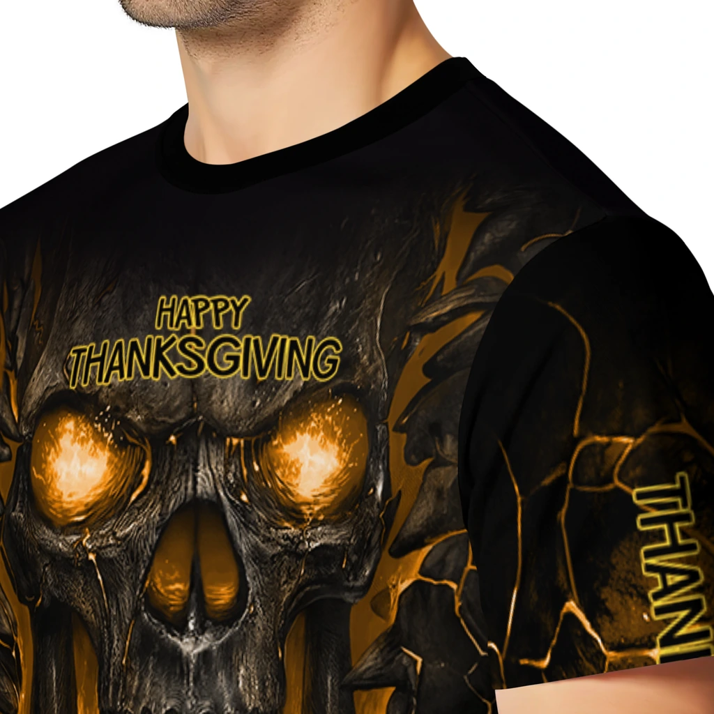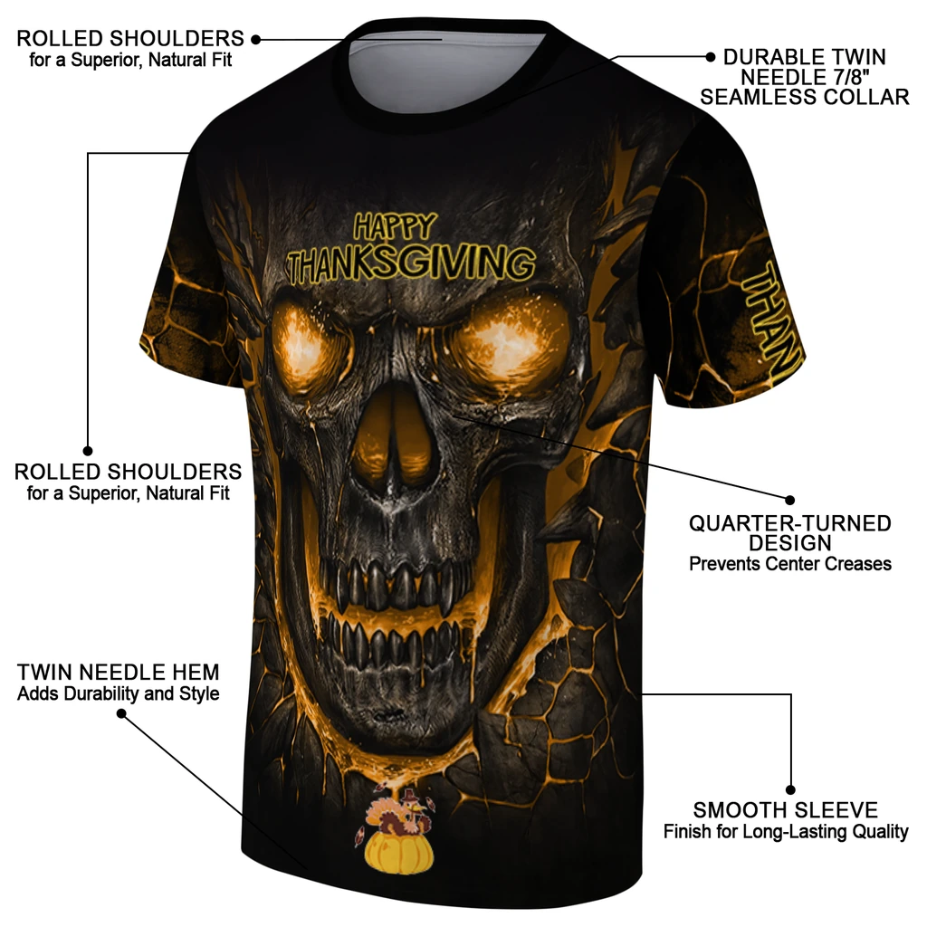 Thanksgiving Turkey 3D Tshirt – Fiery Skull Yellow Black – Product Overview