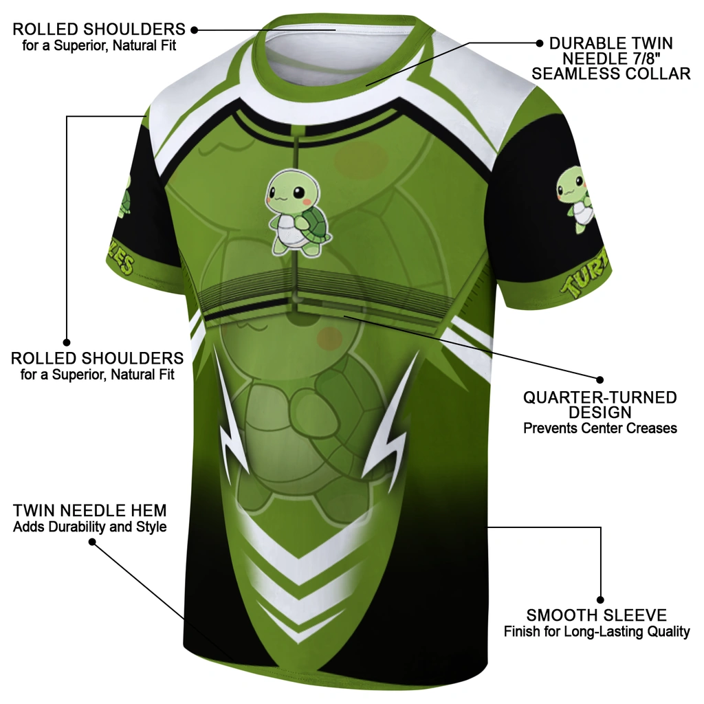 Turtle Logo 3D Tshirt - Customized Futuristic Armor Green Black White