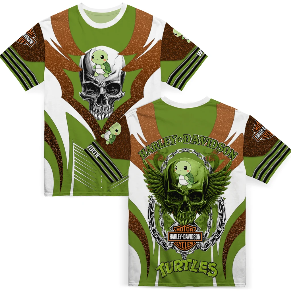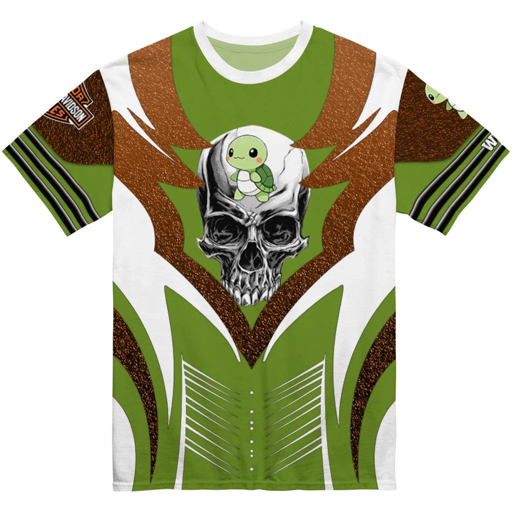 Turtle Logo 3D Tshirt – Customized Skull Emblem Green White – Product Overview