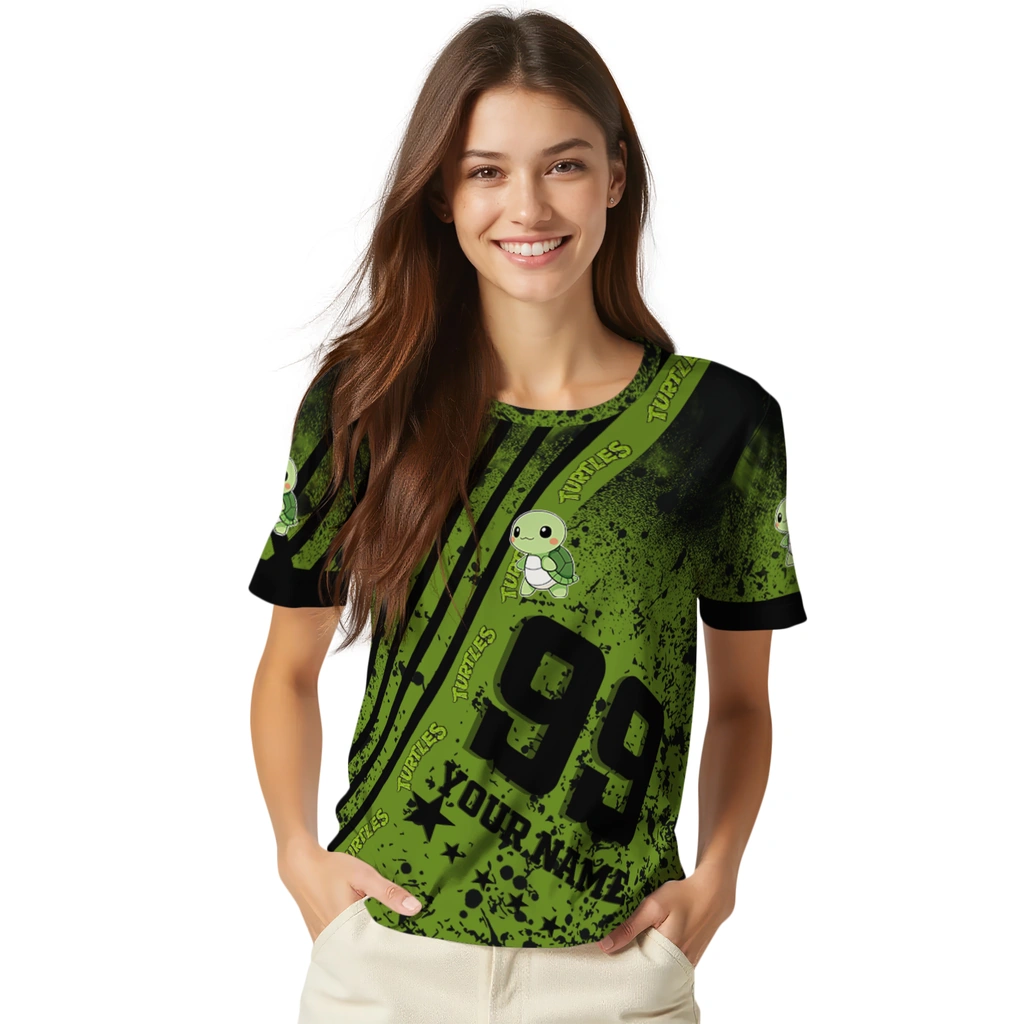 Turtle Logo 3D Tshirt – Customized Splatter Art Motif Green Black
