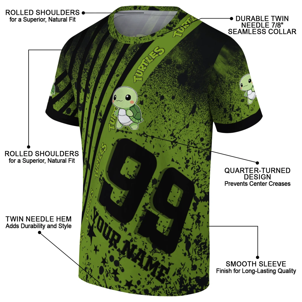 Turtle Logo 3D Tshirt – Customized Splatter Art Motif Green Black – Product Overview